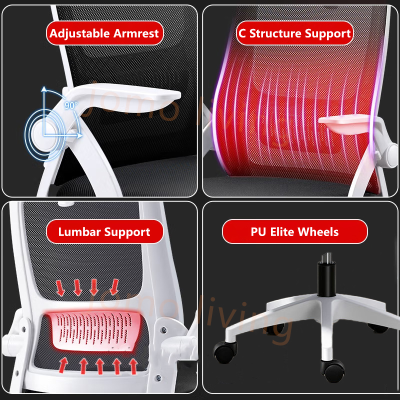 【Local Ready Stocks】Ergonomic Comfort Office Chair with Latex Cushion Backrest + Lumbar Support Design Spine Relieves
