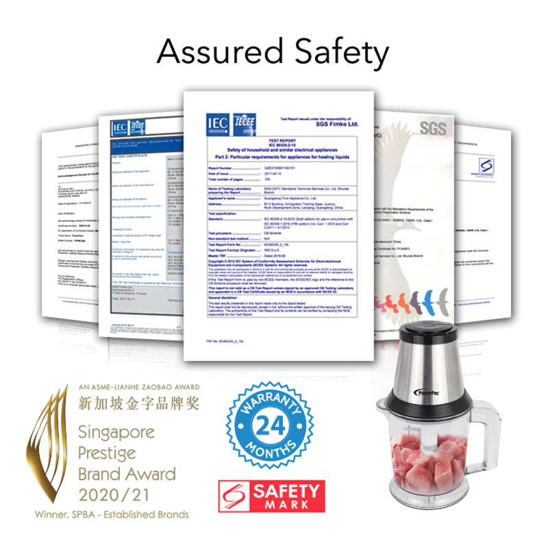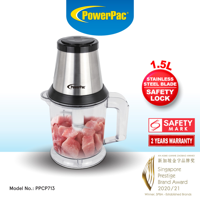 PowerPac Food Chopper 1.5L with Safety Lock Switch (PPCP713)