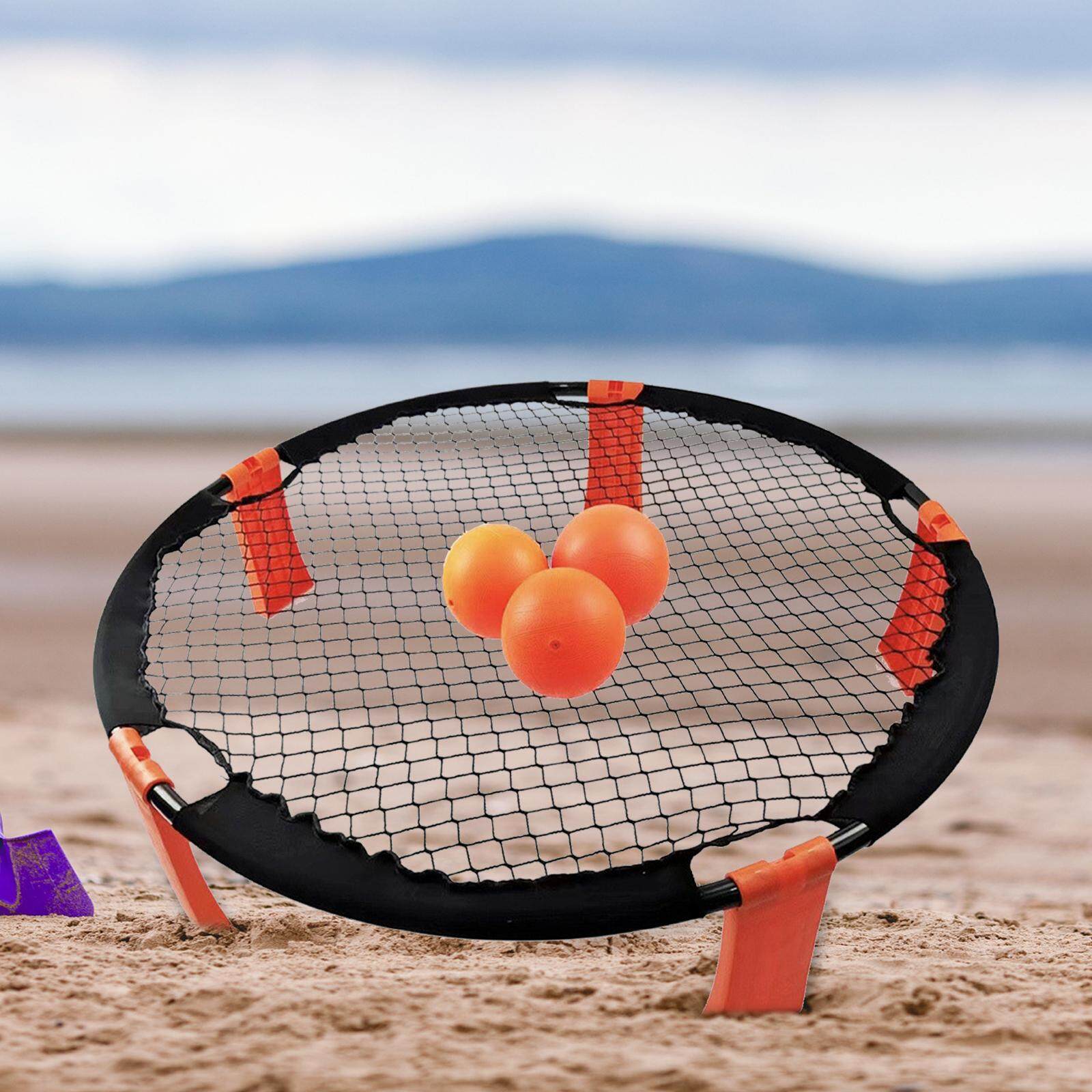 - Spike Game Set: Includes 1 x round net, 3x balls, 1x carrying case, and 1x inflating pump. An exciting outdoor lawn game for kids, teens, and adults!