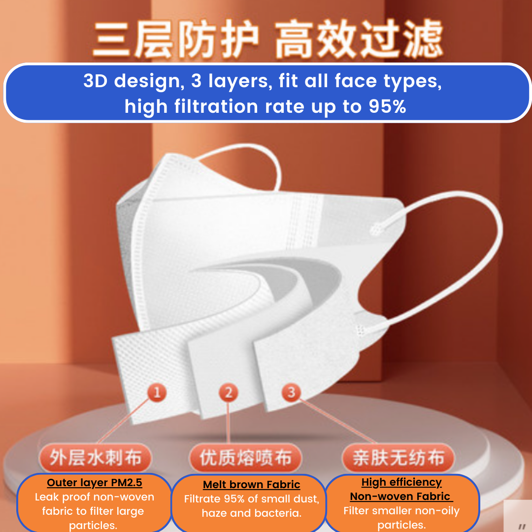KN95 Individual Pack Adult Mask 3ply 3D - 30/100pcs Disposable Face Masks Black and White, Local SG stock, antibacterial, no fog, individually packed, breathable, cheap mask non surgical medical BFE 9