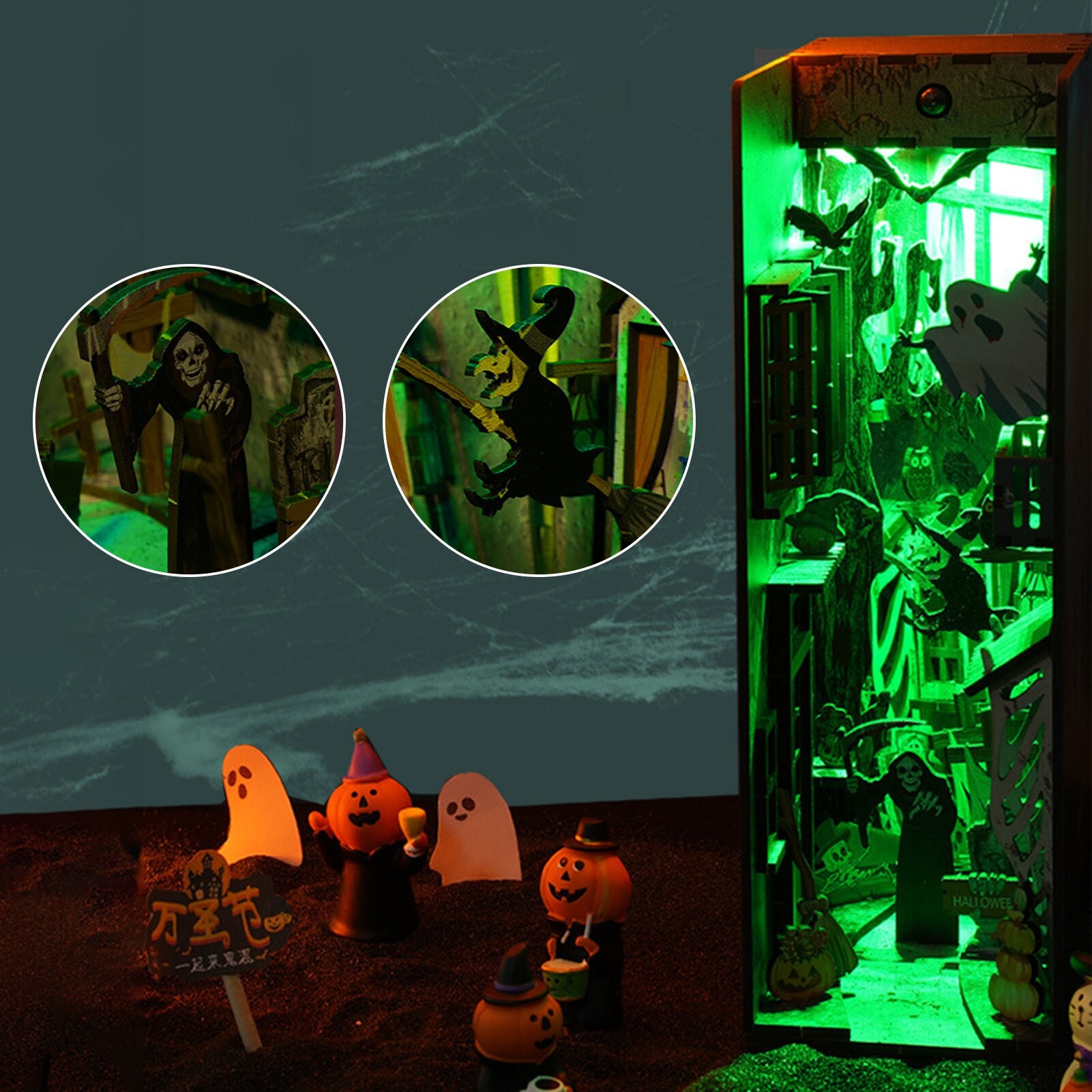 microgood Halloween Ornament Beautifully 3D Effect Standing Design Durable Creative Decorative Colorful 3D Book Shelf DIY Holiday Decoration Party Supplies for Gift